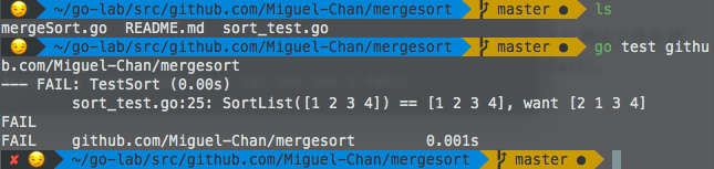 你试着写好了你的第一个 Go 包,怎么测试你编写的函数是否正确呢?Go 提供了 test 功能,可以让我们方便地进行测试,这里使用我之前所编写的一个实现归并排序的程序进行测试,代码可以直接通过go get github.com/Mingtao-Chan/mergesort 获取到$GOPATH/src 下,尝试运行go test github.com/Mingtao-Chan/mergesort 看看结果如何。